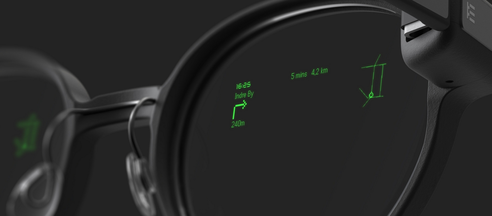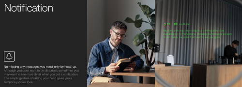Le modèle G1 dispose d’un « micro-LED projector » intégré dans la monture, permettant d’afficher des informations devant l’œil tout en conservant l’apparence d’une lunette classique.